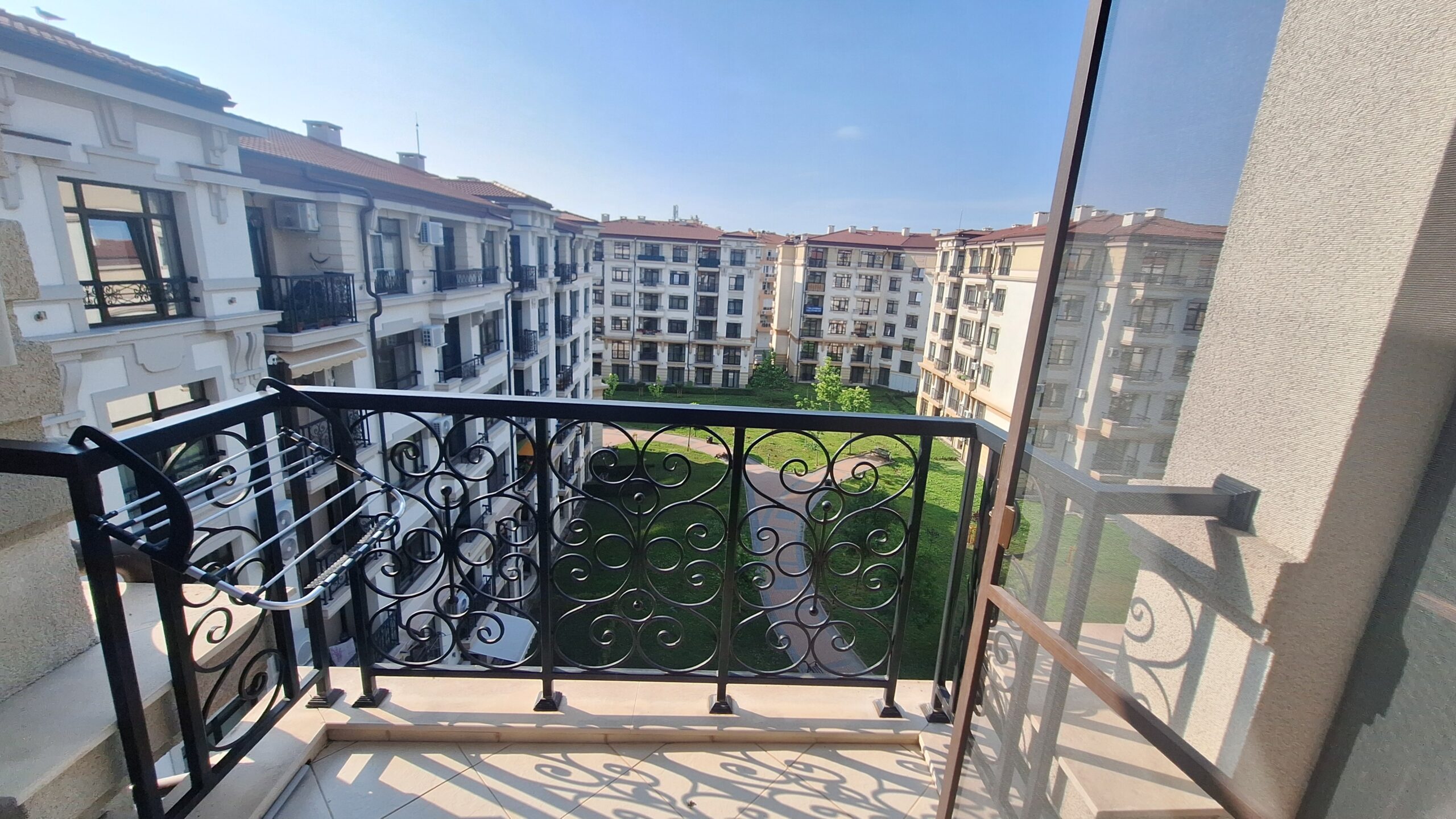 Малък двустаен апартамент в комплекс „Айвазовски Парк“ – в корпус на ул. Тутхон. Апартамента е разположен на 6-ти (последен) етаж в сградата с югоисточно изложение и с гледка към двора на комплекса. Напълно оборудван с пълноразмерна кухня, санитарен възел с душ кабина, спалня (преходна) и всекидневна, балкон с гледка към двора. Апартамента е идеален за семейство с дете (или 2). Намира се само на 120 м от входа на плажа.