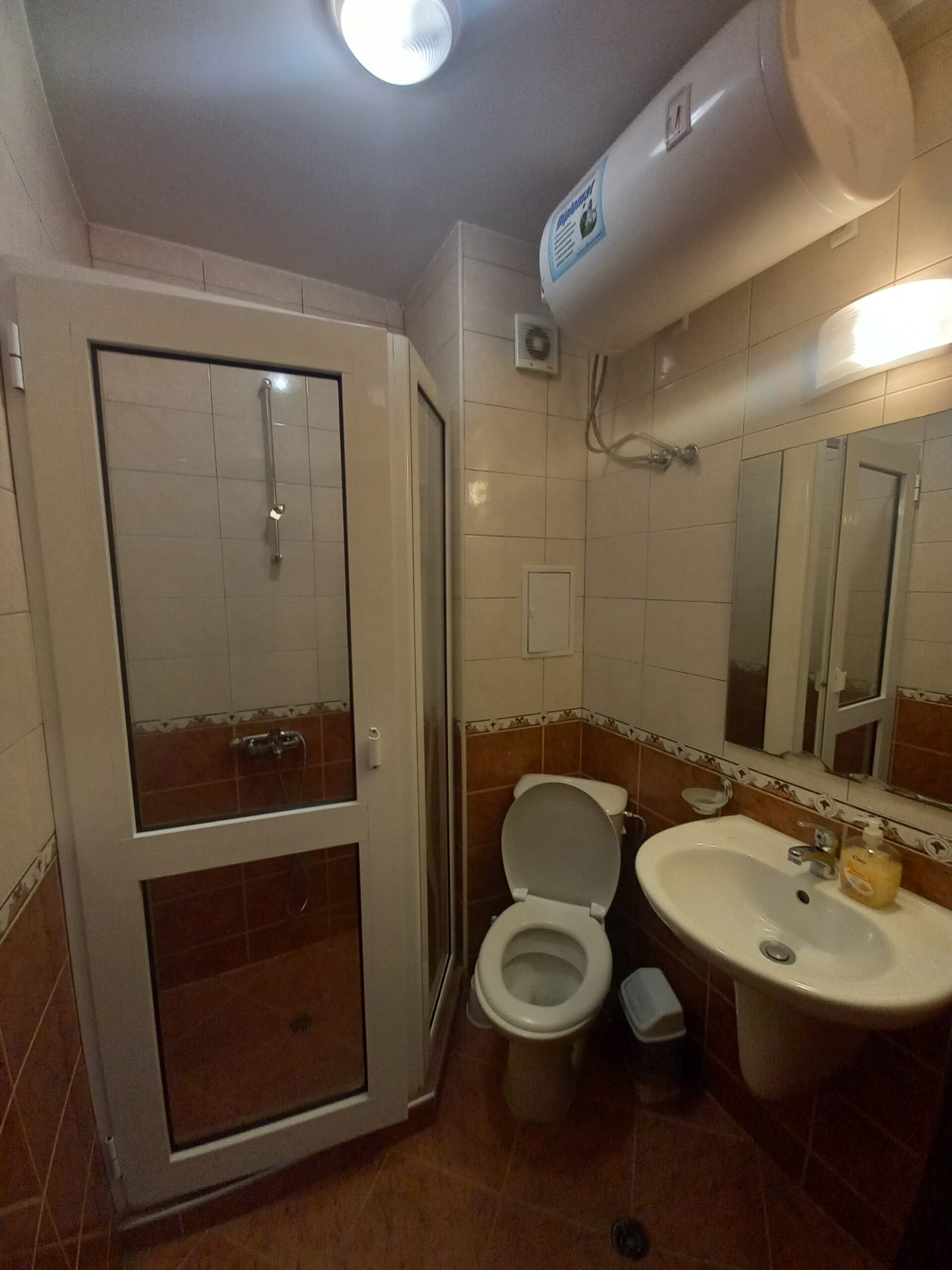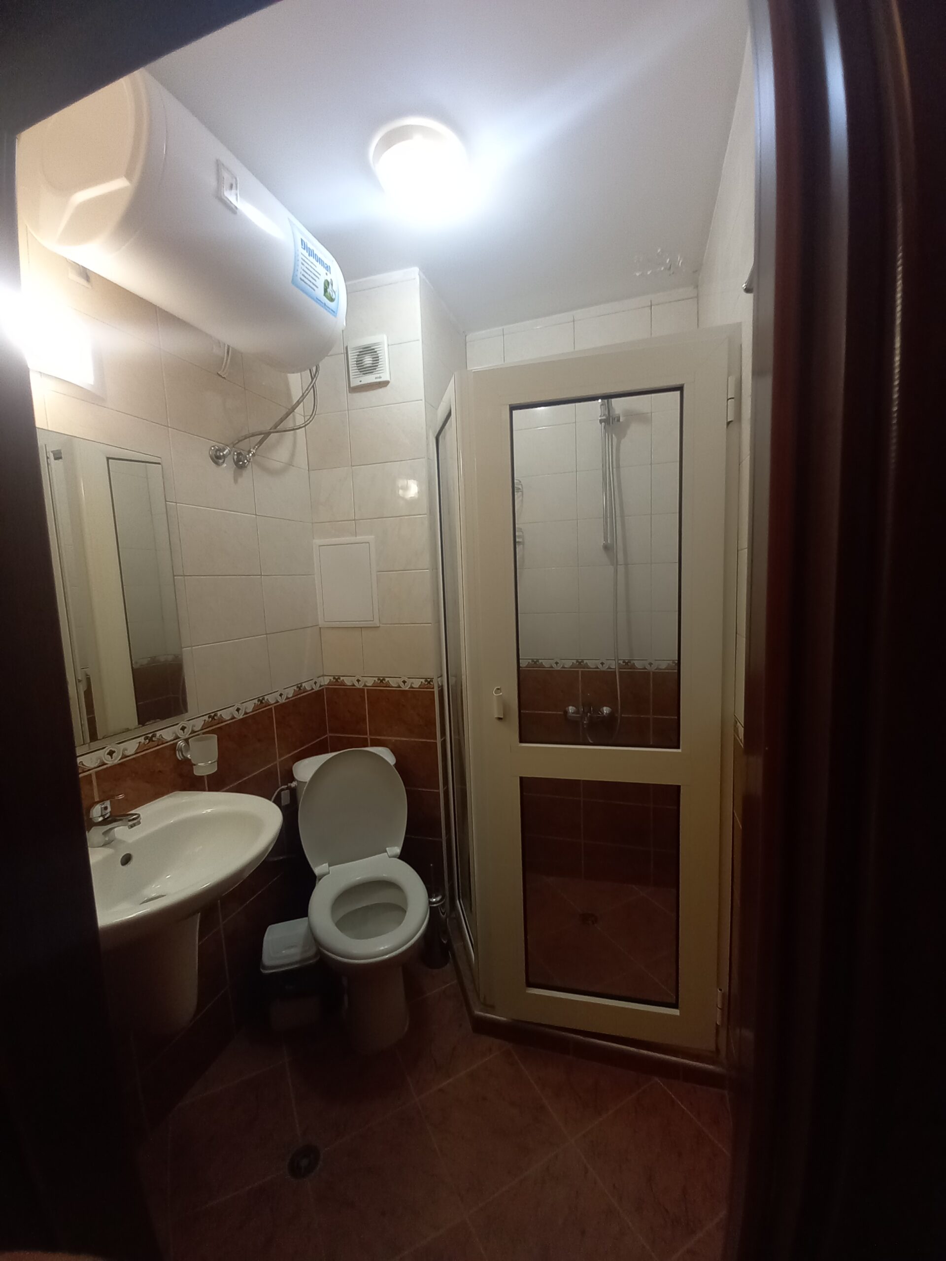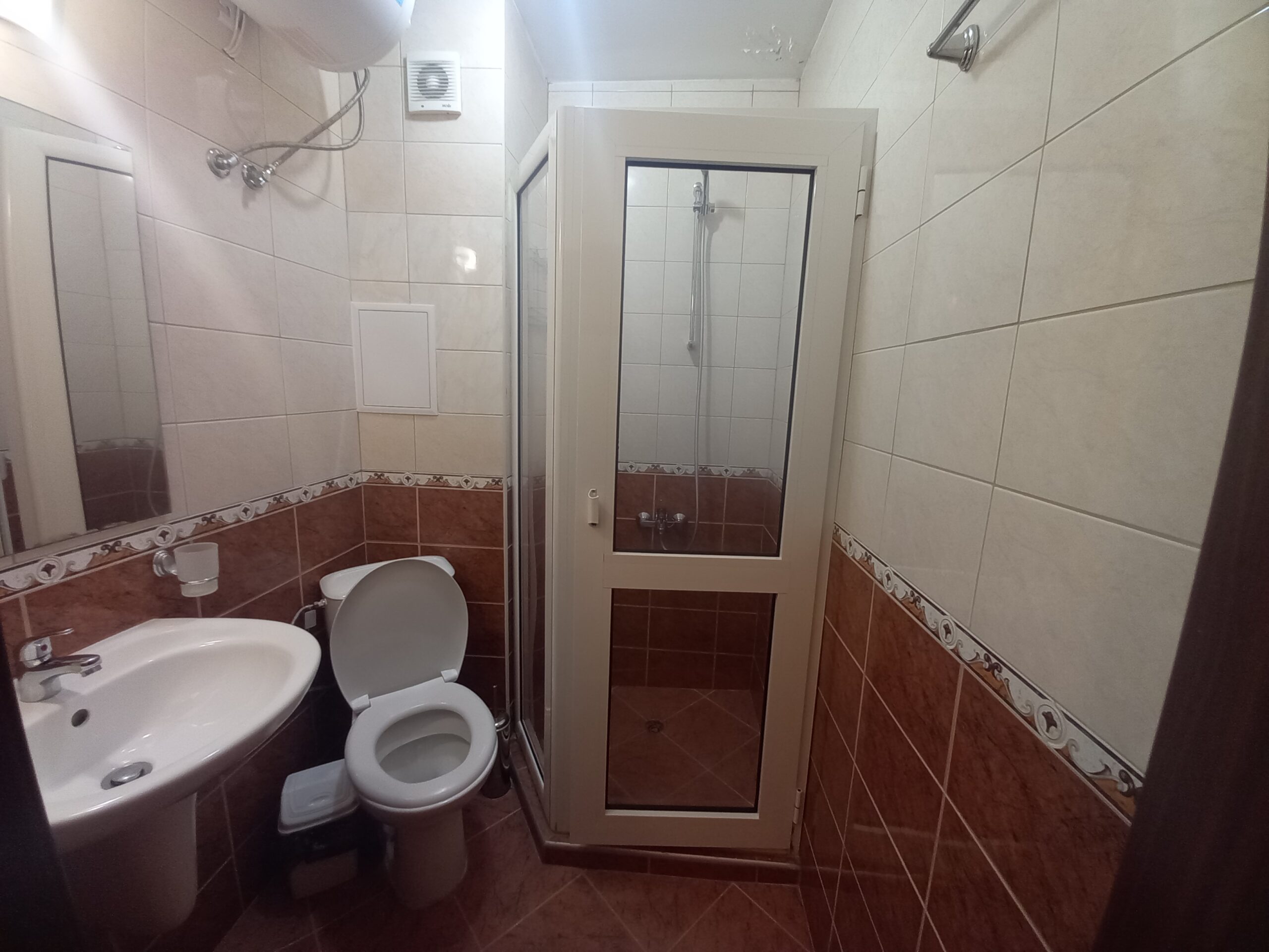 Просторен двустаен апартамент с 2 бани на 50 метра от Санаториума за Калолечение. Имота се намира в сграда Бриз 2 на 1-ви жилищен етаж. Предлага две големи стаи едната от които е оборудвана като всекидневна с кухненски бокс, за удобство има 2 входа, което предлага уединение на обитателите за лесен достъп и изход от имота. Кухнята е оборудвана с микровълнова и ел. котлон, перална машина, хладилник с камера. Има два санитарни възела с 2 тоалетни и душ кабини, 2 балкона, удобен апартамент за по – големи семейства.