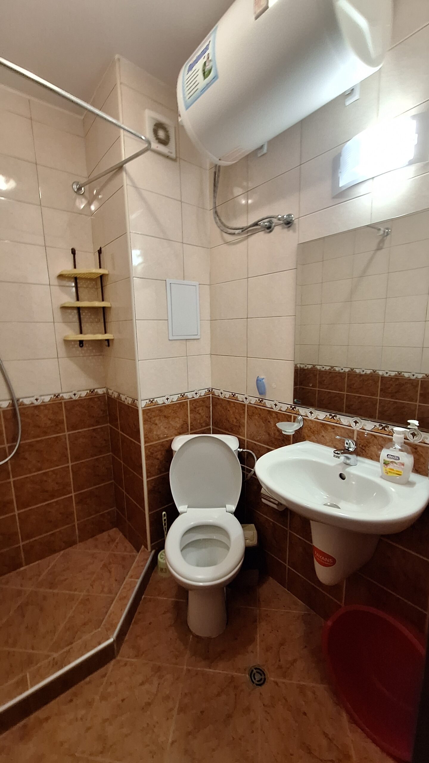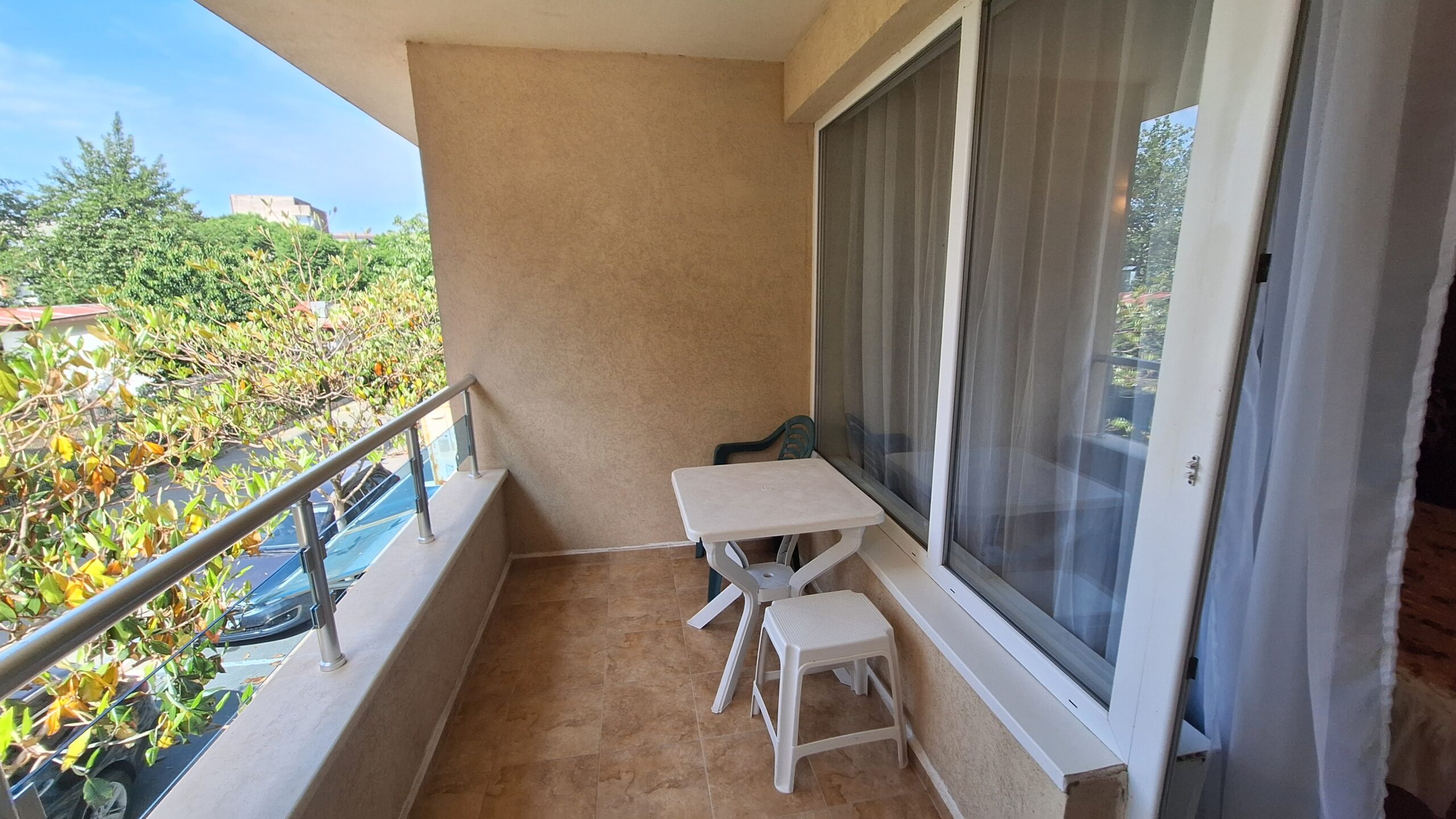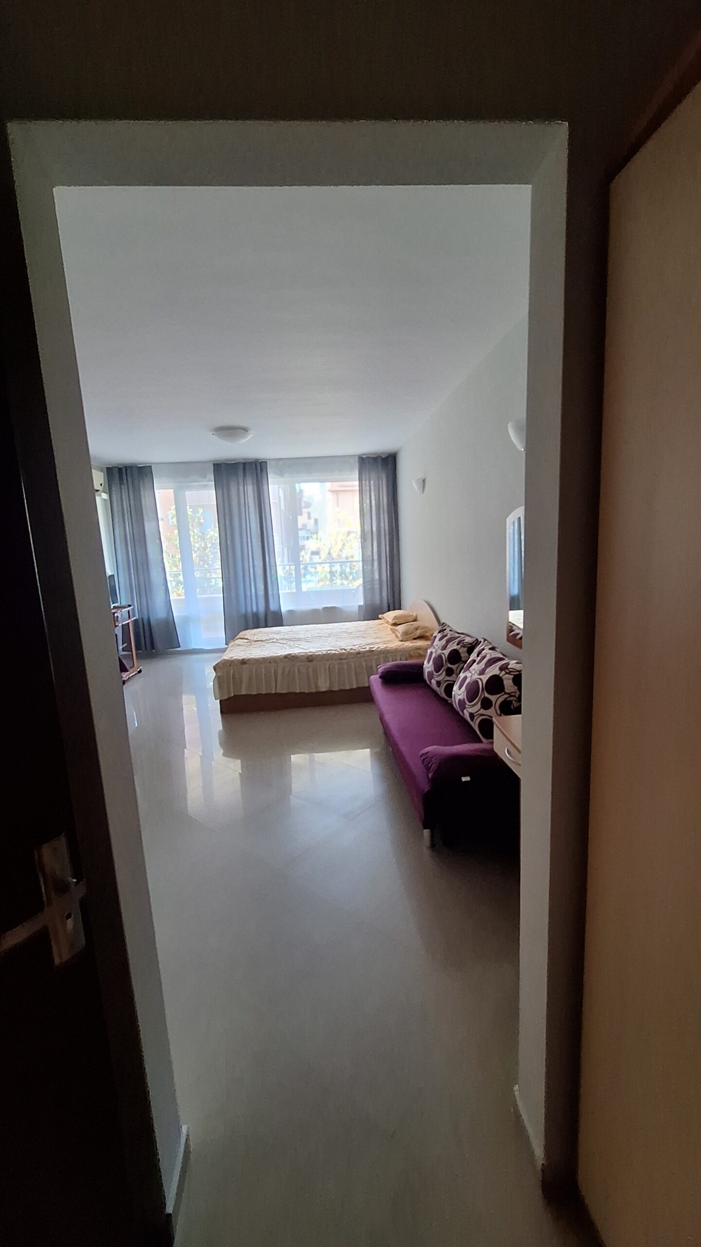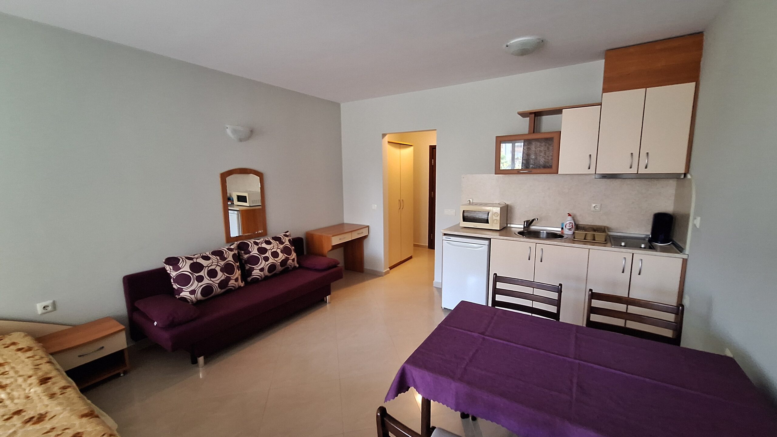 Просторно Студио в близост до санаториума за калолечение, на около 120 метра от плажната ивица, в близост до комплеклс „Роуз Гардън“. Имота е подходящ за 2 възръстни и дете, има оборудвана кухня, просторен балкон, спалня, разтегателен диван. Апартамента е светъл с южно изложение, намира се на първи жилищен етаж над партерен, в близост до сградата има бистро, няколко магазина, ресторанти, пазарче за плодове и зеленчуци, 2 общински паркинга, удобно е за средно дълъг престой.