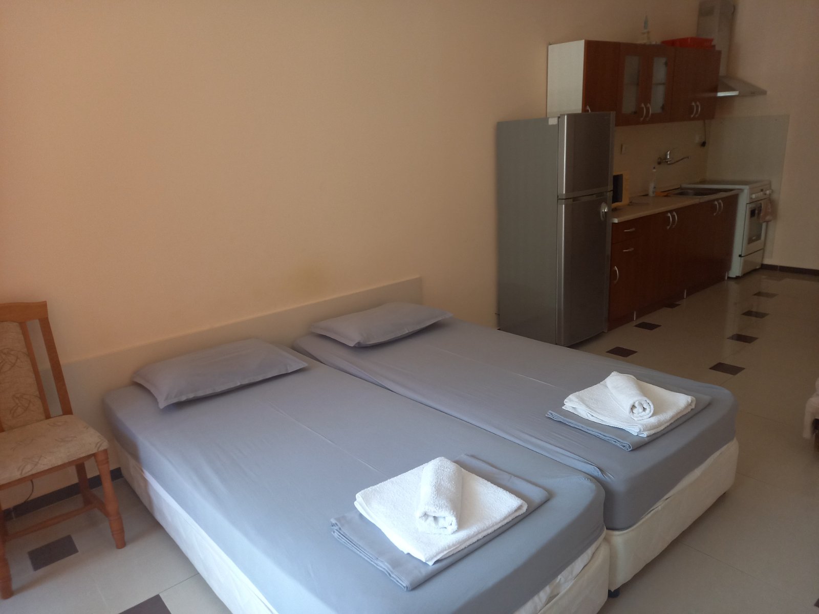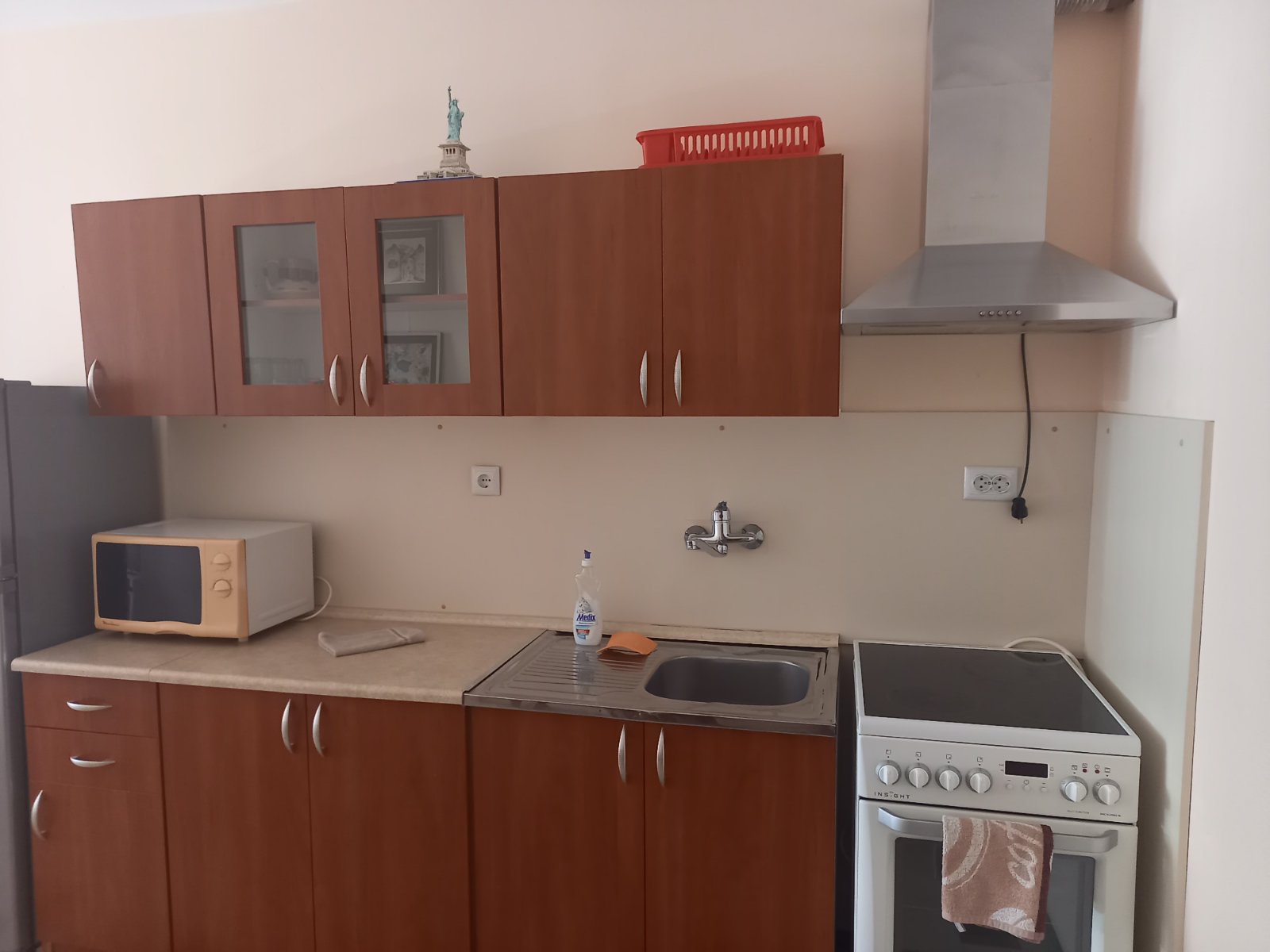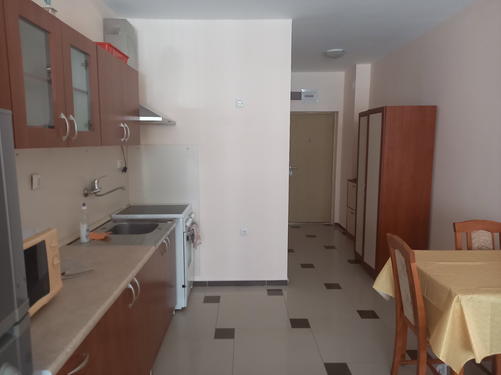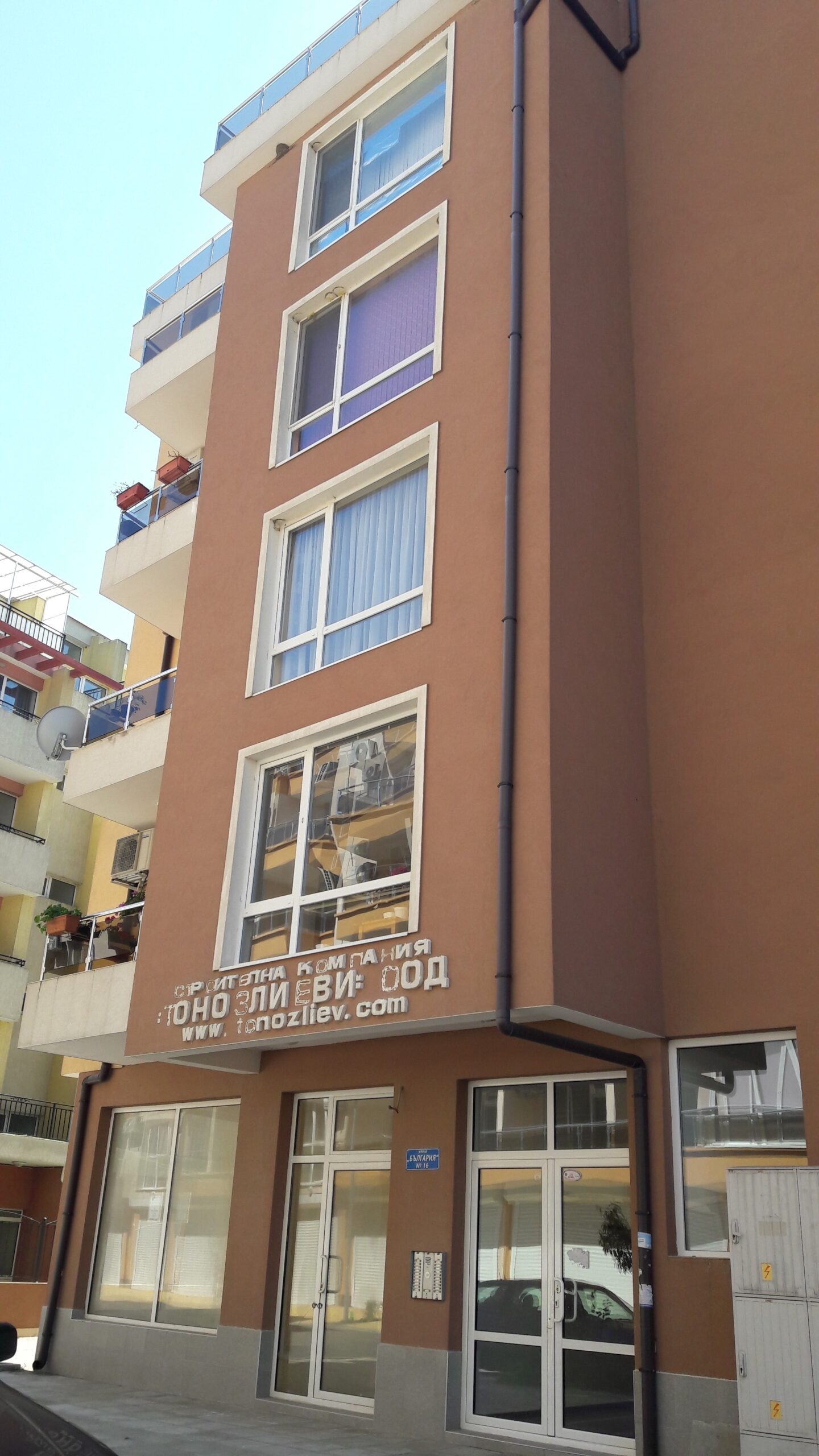 Студио на ул. България на 3-ти жилищен етаж, предлагащо удобства за двама. Апартамента е с оборудвана кухня, две единични легла, разтегателен фотьойл за дете до 10-12 години, балкон, санитарен възел и коридор. Намира се в сграда на ул. България №16, в близост до сладкарница „Захаро“, На около 350 метра до централната улица и на около 250 метра до плажа. В близост до сградата има няколко супермаркета, множество ресторанти, автогарата е на около 250 метра, безплатен паркинг на около 80 метра и няколко общински платени паркинга.