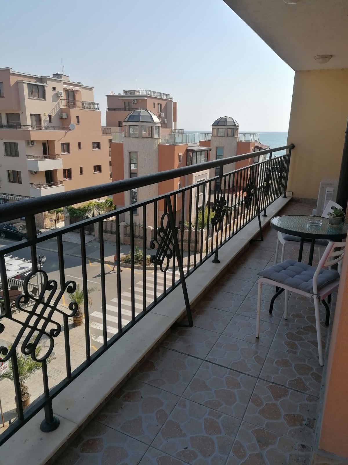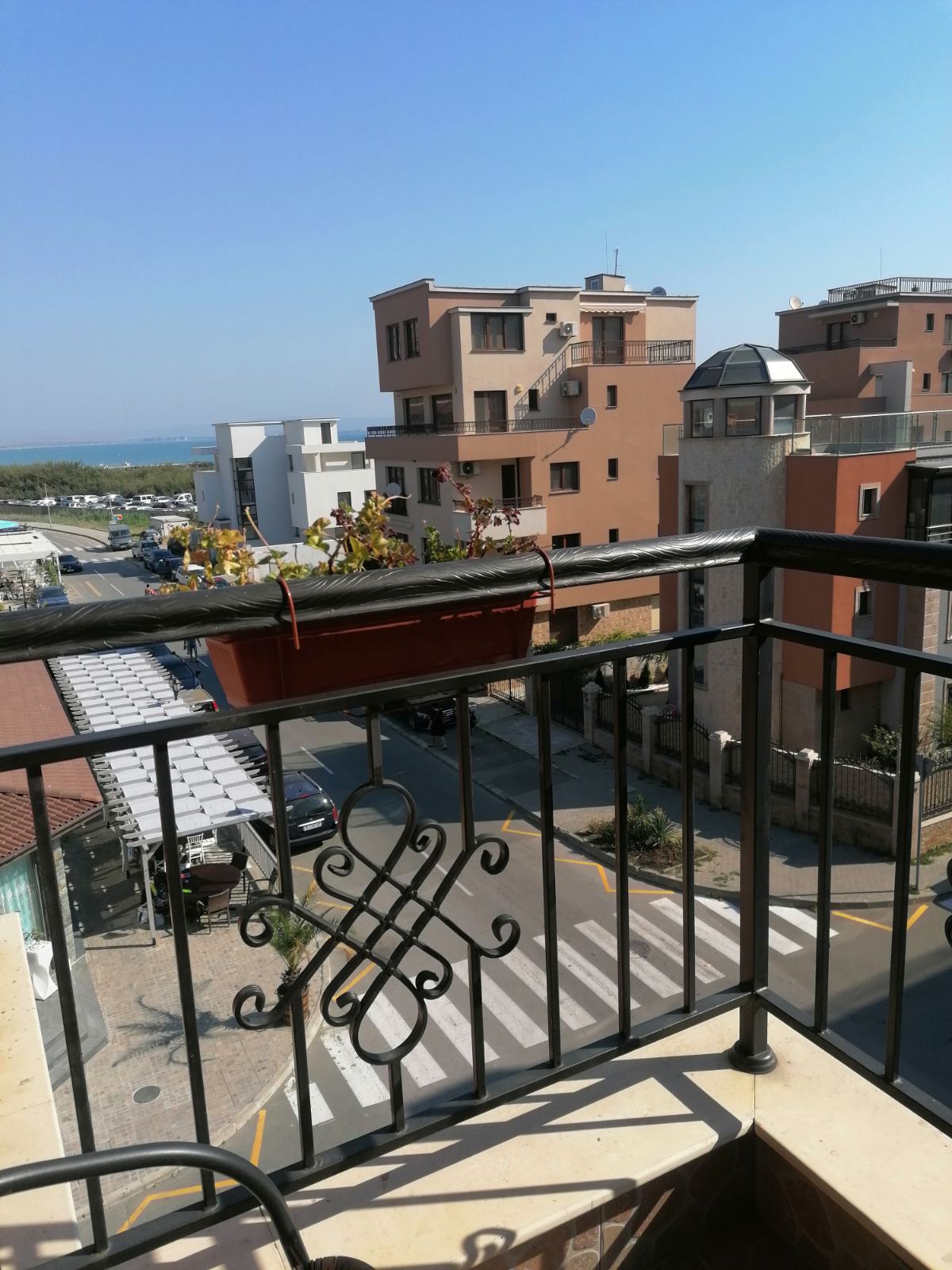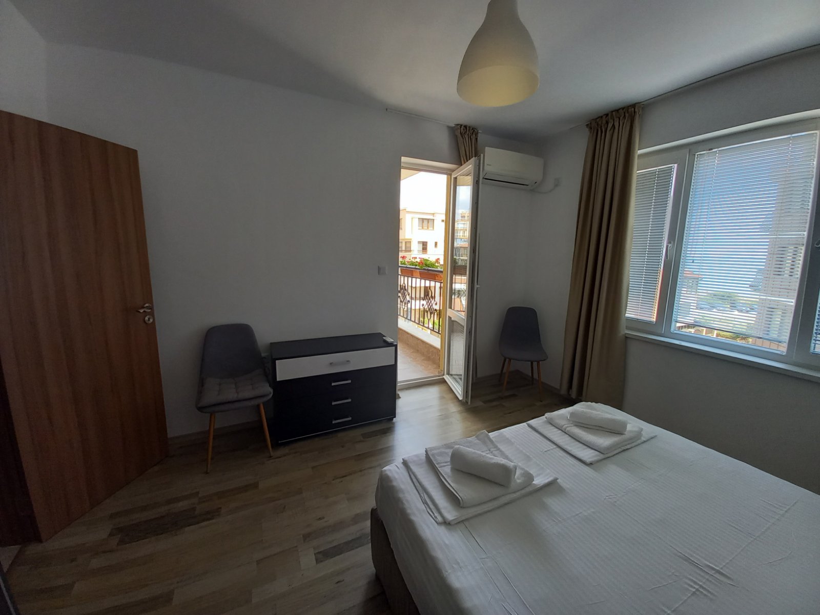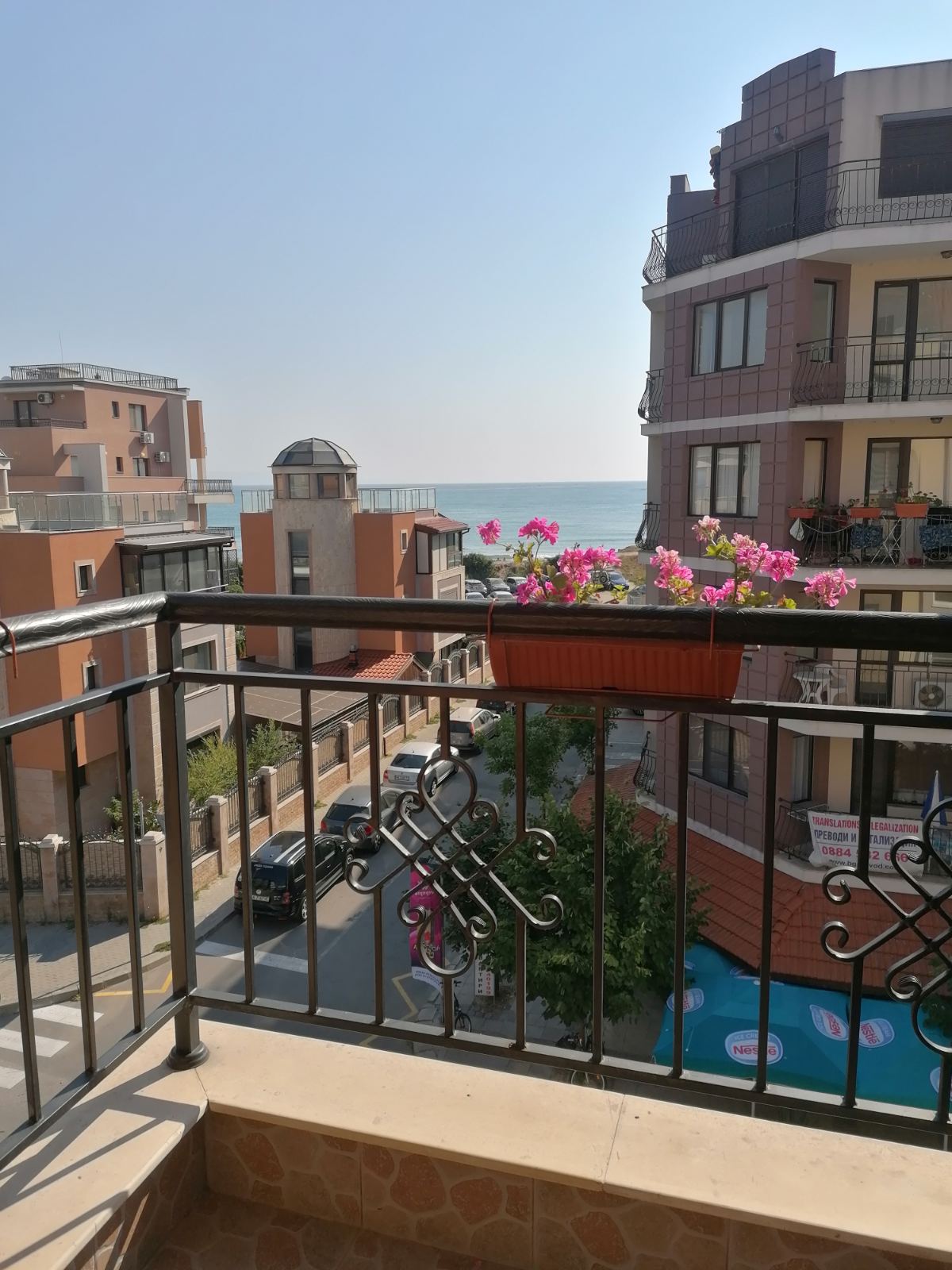 Тристаен апартаменто до входа на плажа с прекрасна гледка към морето. Апартамента е разположен на трети жилищен етаж с изложение на изток, север и запад (на три страни) предлага две спални, всекидневна с кухненски бокс, санитарен възел, балкон на изток към плажа, огромна тераса на север и запад. Сградата е само на 40 метра от входа на плаж, в съседство с комплекс „Роуз Гардън“, района е привлекателен с избора на плажове, калолечение и места за хранене.