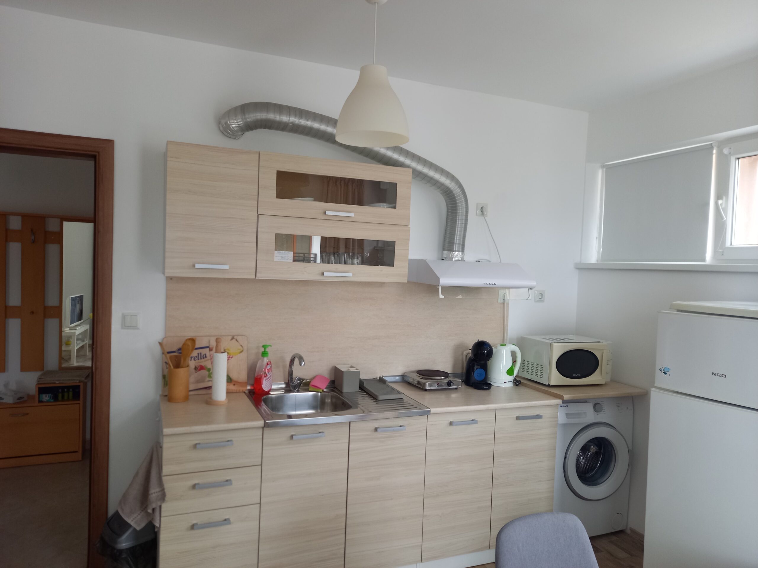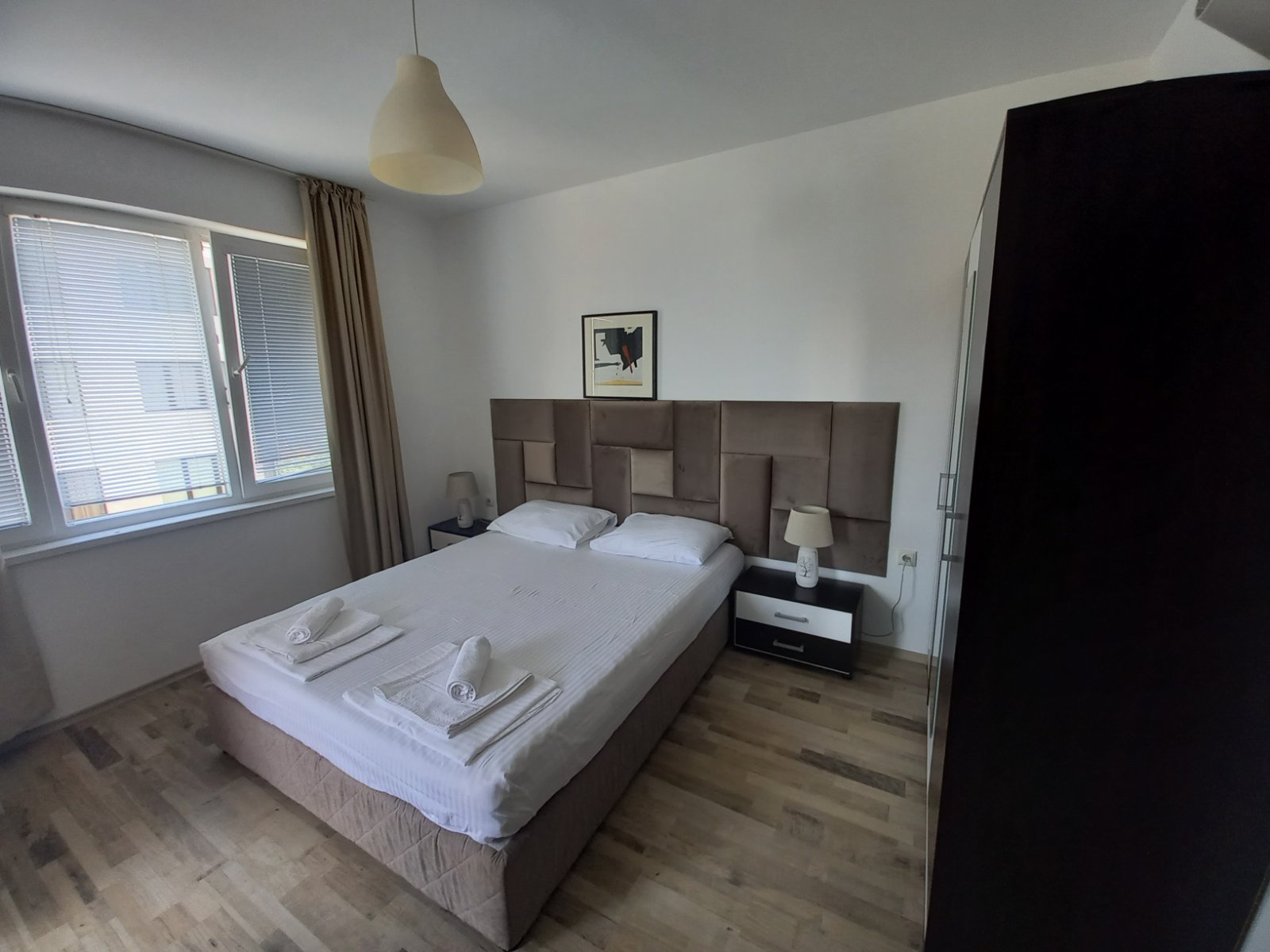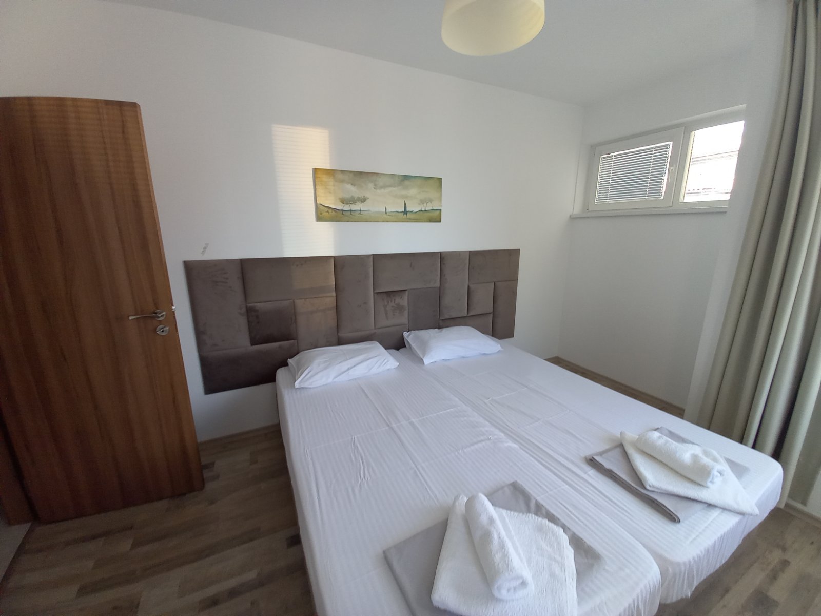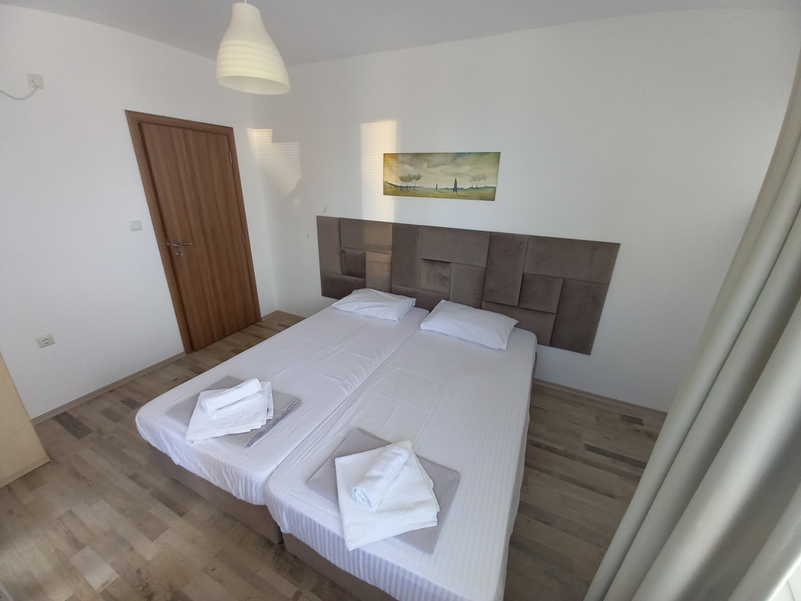 Тристаен апартаменто до входа на плажа с прекрасна гледка към морето. Апартамента е разположен на трети жилищен етаж с изложение на изток, север и запад (на три страни) предлага две спални, всекидневна с кухненски бокс, санитарен възел, балкон на изток към плажа, огромна тераса на север и запад. Сградата е само на 40 метра от входа на плаж, в съседство с комплекс „Роуз Гардън“, района е привлекателен с избора на плажове, калолечение и места за хранене.